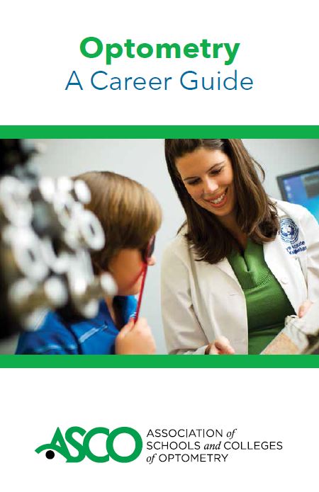 This career guide was written and compiled by the Association of Schools and Colleges of Optometry (ASCO). The guide was written to provide a “core document” that could represent the most current, consistent, and reliable information on optometry as a career for use by prospective students, prehealth advisors, and optometrists who want to share information about their profession with others. The material is intended for use by ASCO and its member schools and colleges in any format that will make information about optometry accessible and available to those who express interest in the profession. Updated Spring 2015