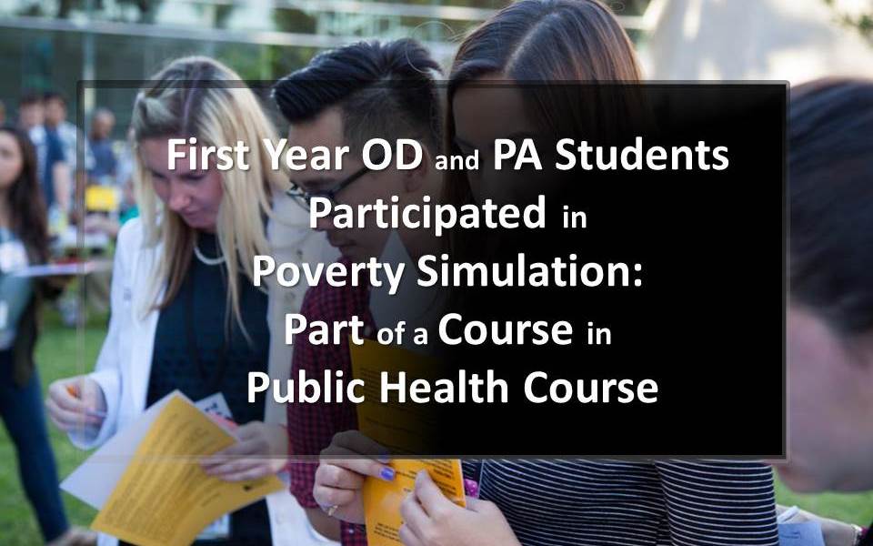 First Year OD and PA Students Participated in Poverty Simulation: Part of Course in Public Health
